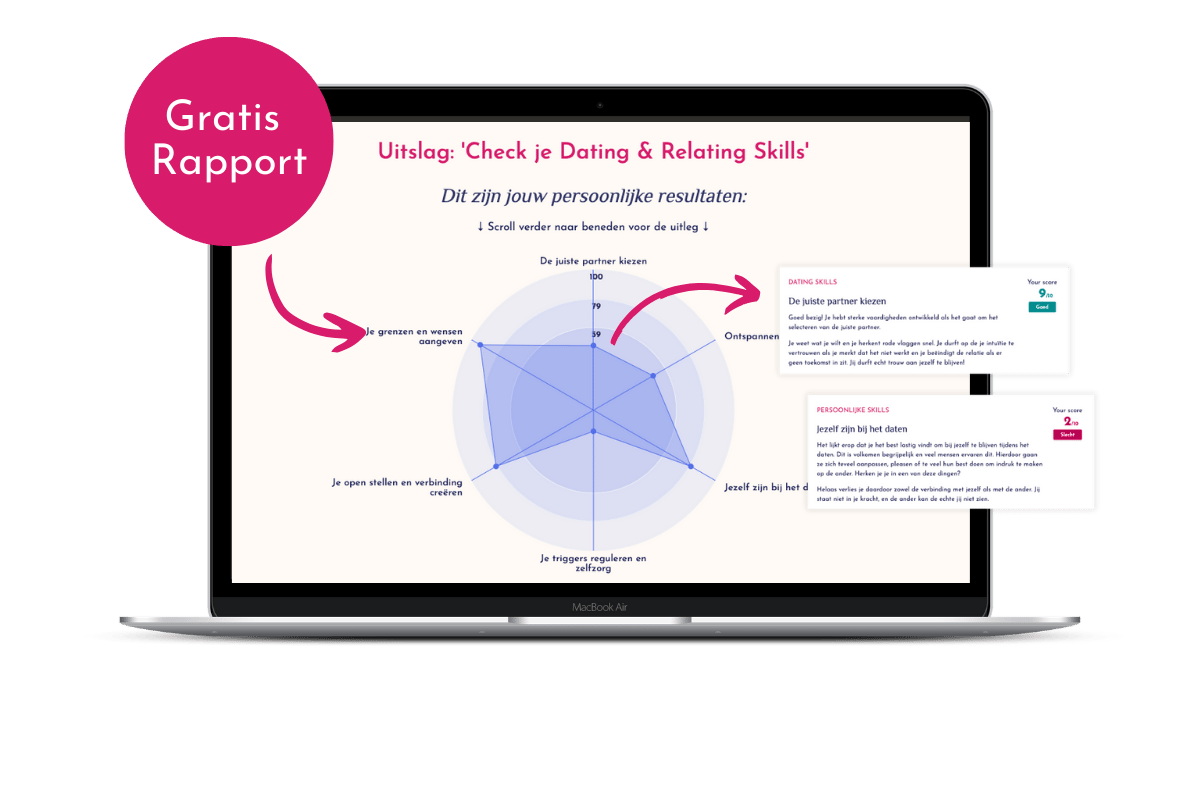 Doe de test en ontvang jouw persoonlijke dating rapport dat onthult welke dating vaardigheden jij verder kunt ontwikkelen.